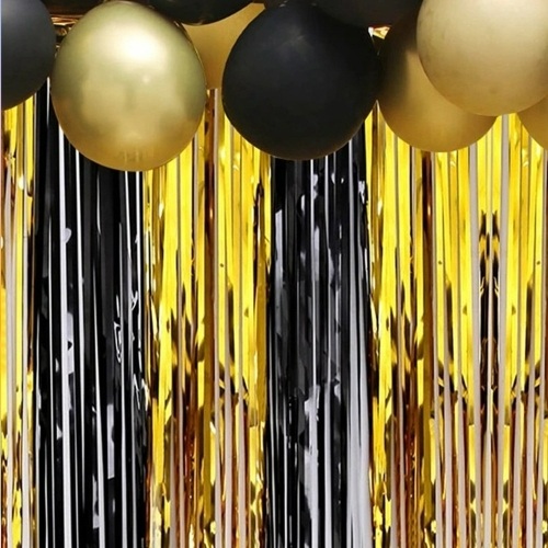 Metallic Foil Fringe Curtain Backdrop - 3ft x 8ft Tinsel for Party & Photo Booth